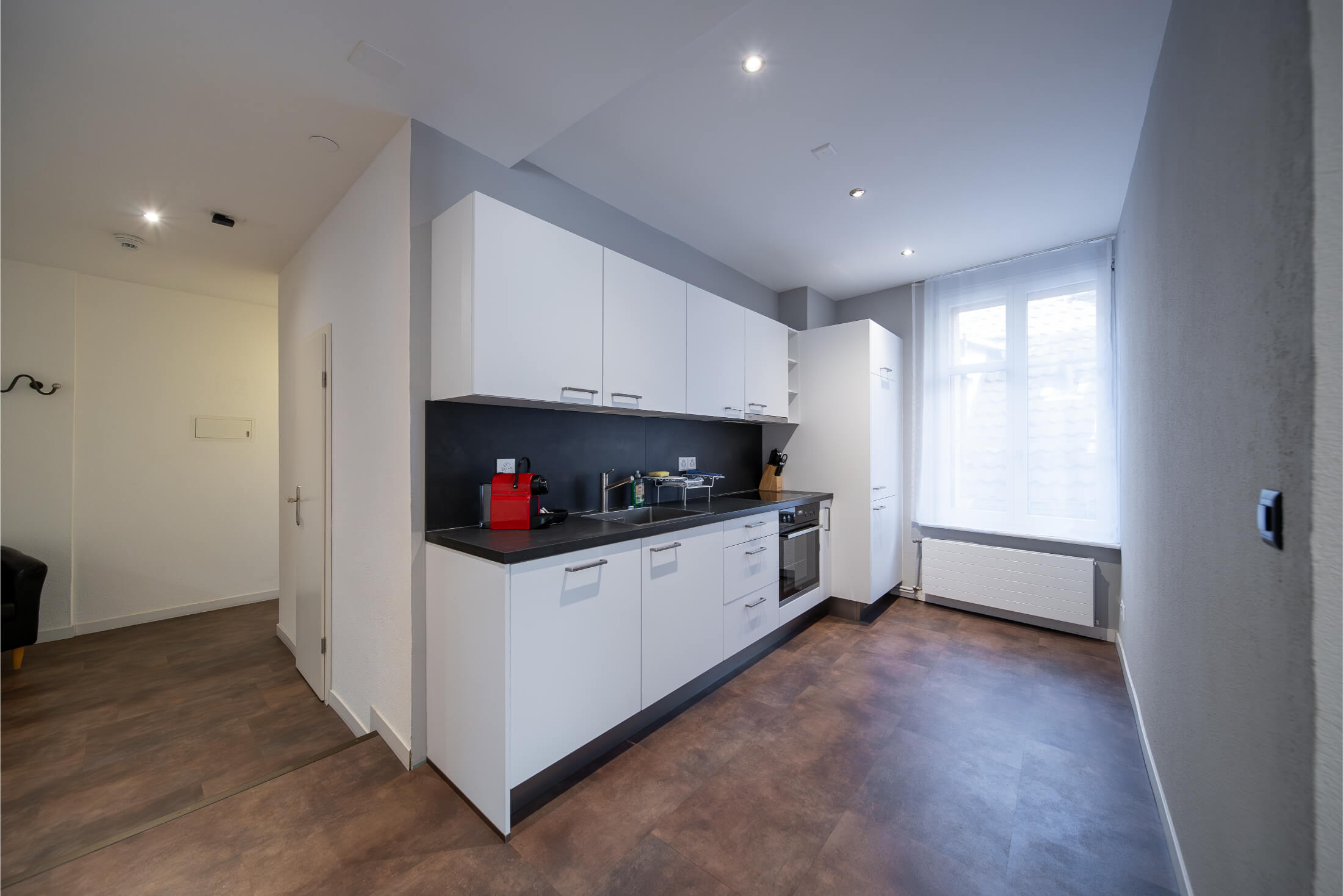Jede Wohnung ist mit einer Nespresso-Kaffeemaschine sowie einer eigenen Waschmaschine und einem Trocknungsgerät ausgestattet. Ein Anfangsbestand an Kaffeekapseln und Waschmittel ist bereits inklusive – weitere Kapseln und Waschtabs können bequem über das Hotel bezogen werden.
